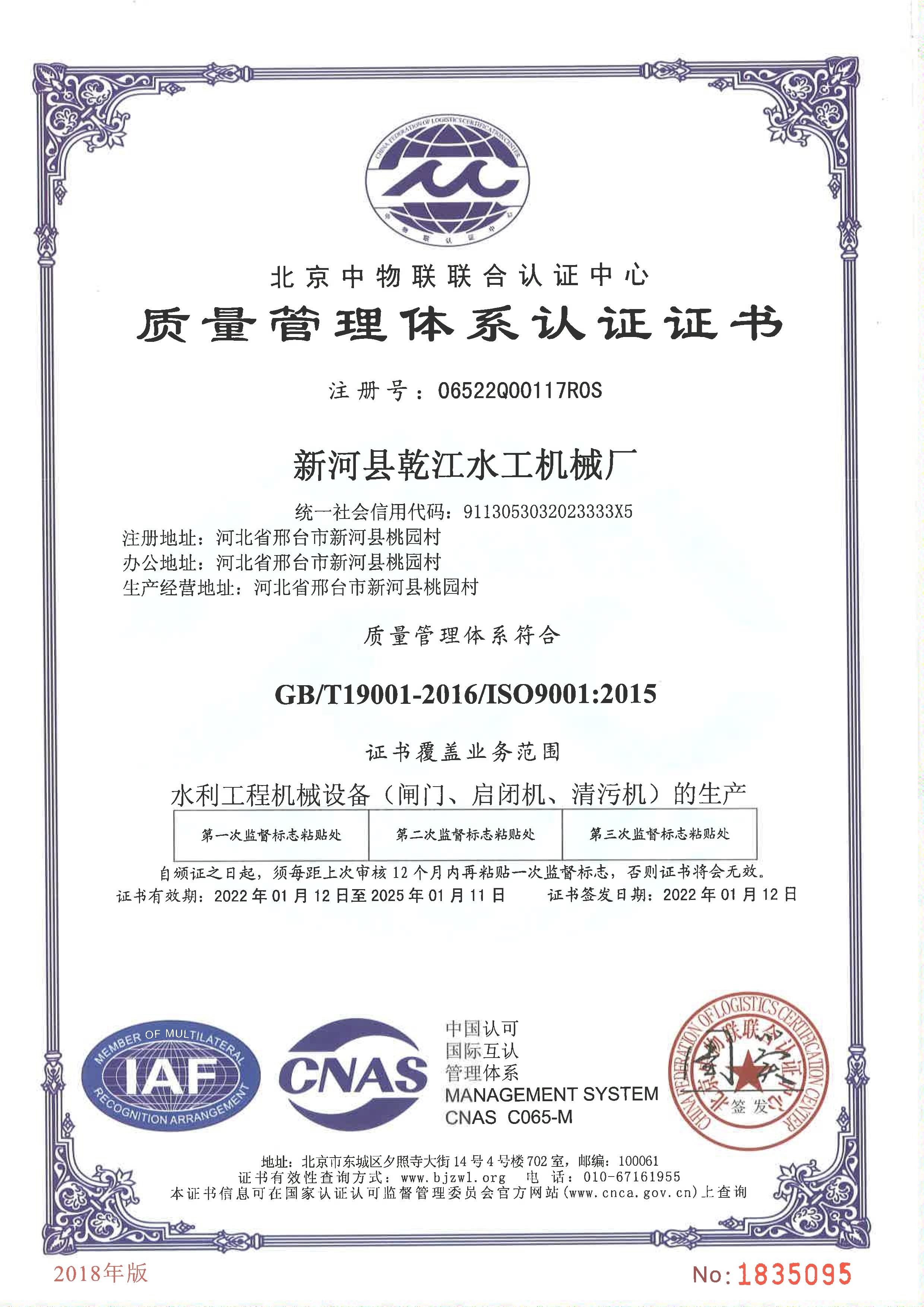 新河縣乾江水工機械廠坐落于河北省新河縣工業(yè)園區(qū),本廠是專業(yè)研發(fā).生產水利機械產品的廠家。本廠閘門.啟閉機.清污設備等產品的技術上具有豐富的實際經驗,并注重新產品的開發(fā)研制。        啟閉機類:QL